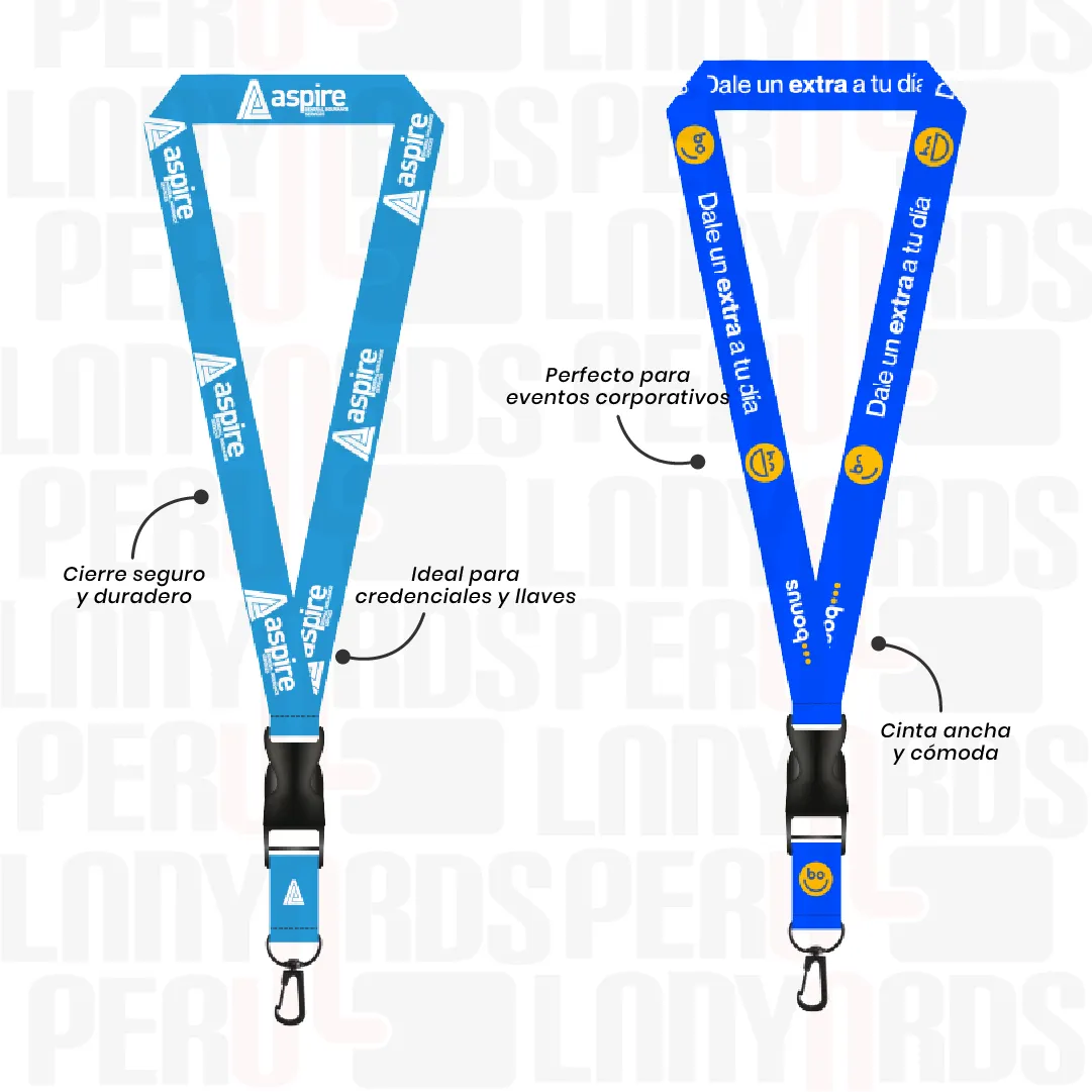 Diseñado para acompañar a tu equipo en cada jornada con seguridad y estilo. Este lanyard de 2,5 cm con tip top importado y arnés negro combina durabilidad y funcionalidad, asegurando que tu marca se mantenga visible y profesional en todo momento.