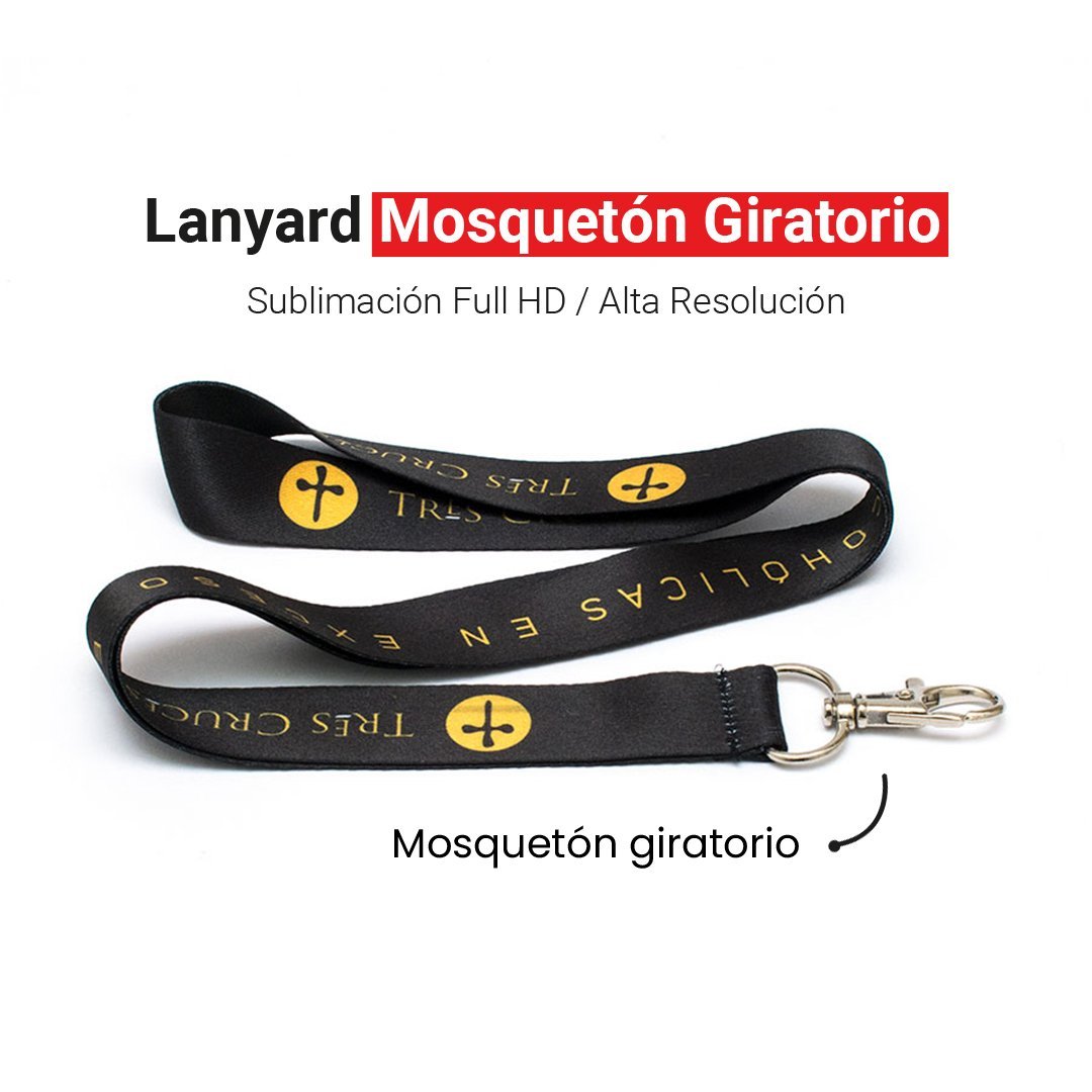 ACCESORIO: Mosquetón giratorio metálico, resistente y práctico, que permite sujetar credenciales, llaves o tarjetas con total libertad de movimiento y seguridad.