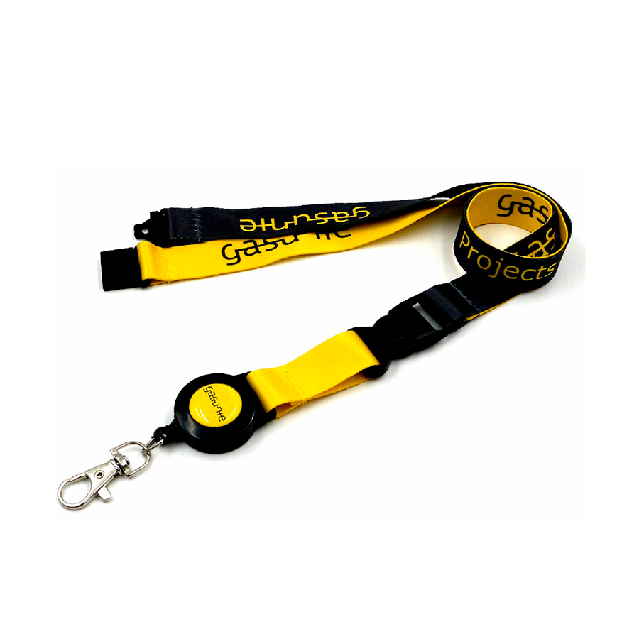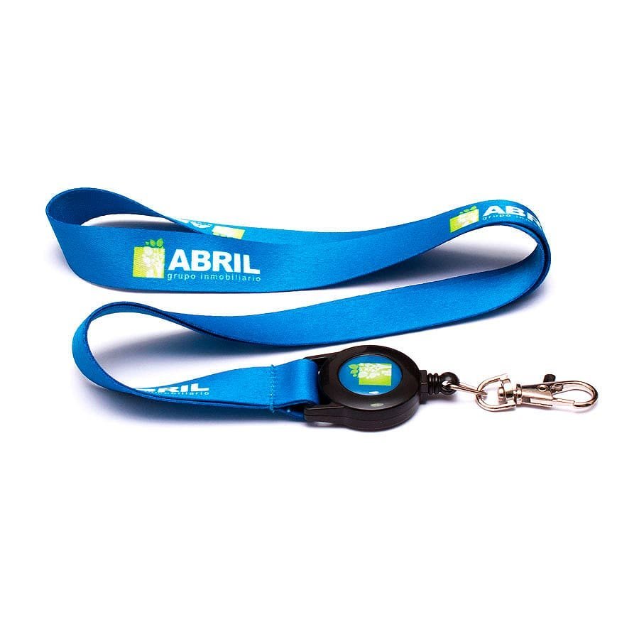 El lanyard de los ejecutivos y empresas. Lanyard de cinta de polyester importada de 90cm de largo con sujetador metálico a presión y yoyo elástico desplegable. La impresión en sublimado digital en miles de colores y cosido con hilo de nylon ultra-resistente y doble costura.