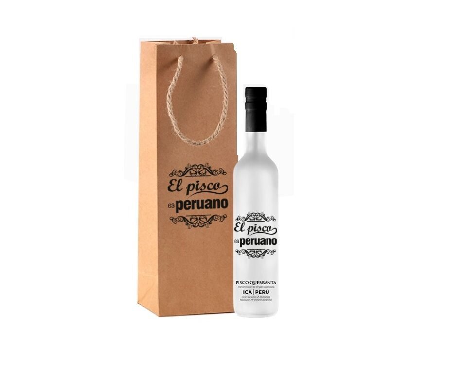 Botella de pisco y caja totalmente personalizable y amigable con el medio ambiente. Ideales para oficinas, empresas, reuniones, agasajos por días festivos, regalos de fin de año y fiestas. Personalizamos GRATIS tu producto con la impresión de tu logotipo.