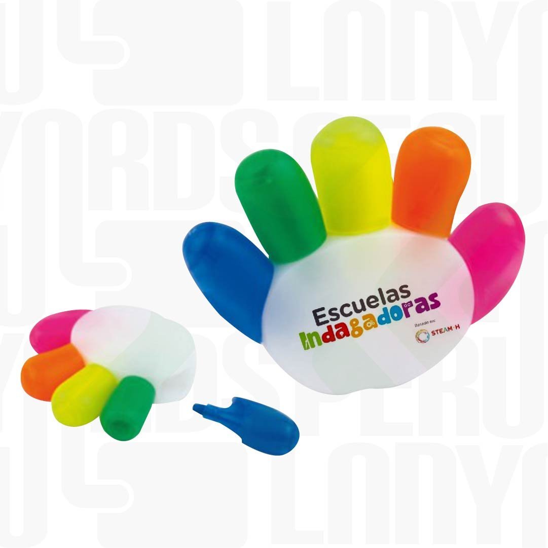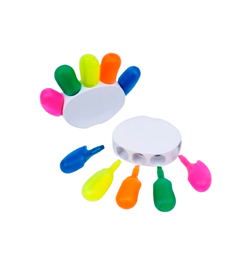 Resaltador en forma de manito con 5 colores de plumón resaltador,modelo llamativo, cada dedo es un color, resalta muy bien el logo por la extensión del área de impresión