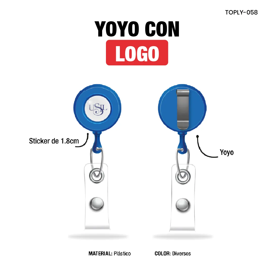 El Yoyo con Logo es un divertido y atractivo producto promocional que permite personalizar tu marca. Fabricado en plástico, tiene un diámetro de 3 cm, lo que lo hace fácil de manejar y transportar. La impresión se realiza mediante un sticker, y el acabado puede ser diseñado a elección del cliente. Ten en cuenta que se cobra un adicional de S/1.3 por el sticker resinado, y el precio final variará dependiendo de la cantidad solicitada. Perfecto para eventos, ferias o como un regalo original, este yoyo es una forma creativa de hacer que tu marca destaque.